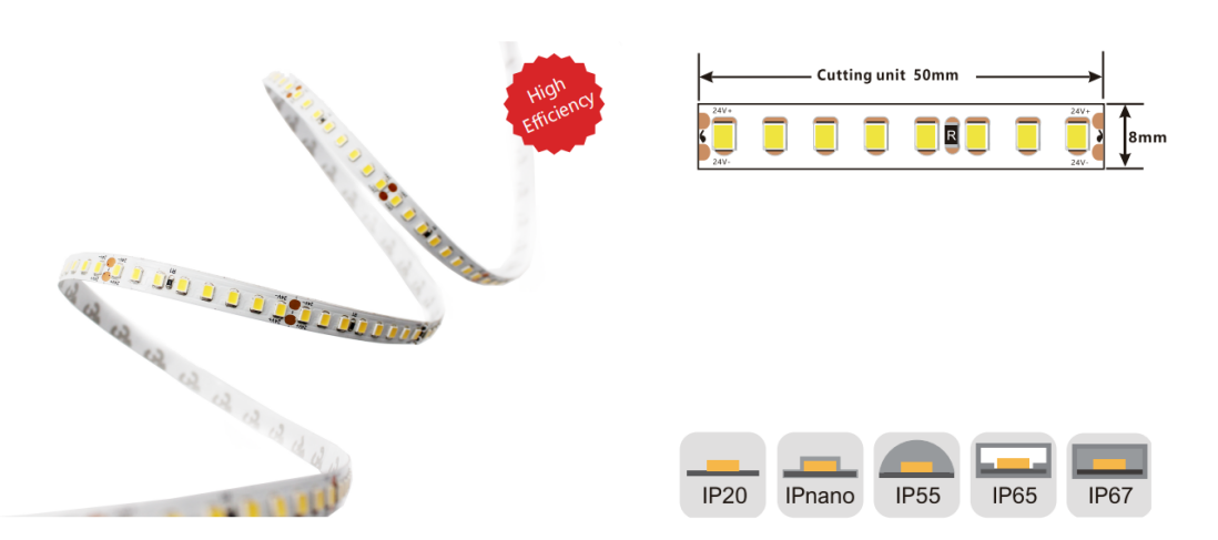 10mm Width 207lm/W High Efficiency 9.6w/M 24V Led Flexible Strip